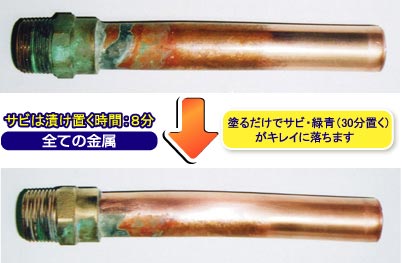 その(1):塗るだけで、サビ・緑青・カルキ・尿石・黒ずみが半分以上除去できる