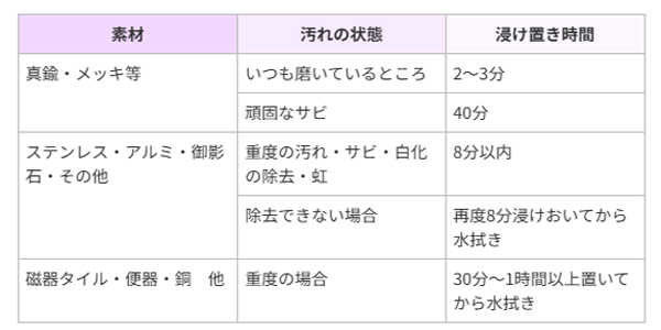 ※浸け置き時間は目安です。それ以上の場合、白くなったりするケースがあります。